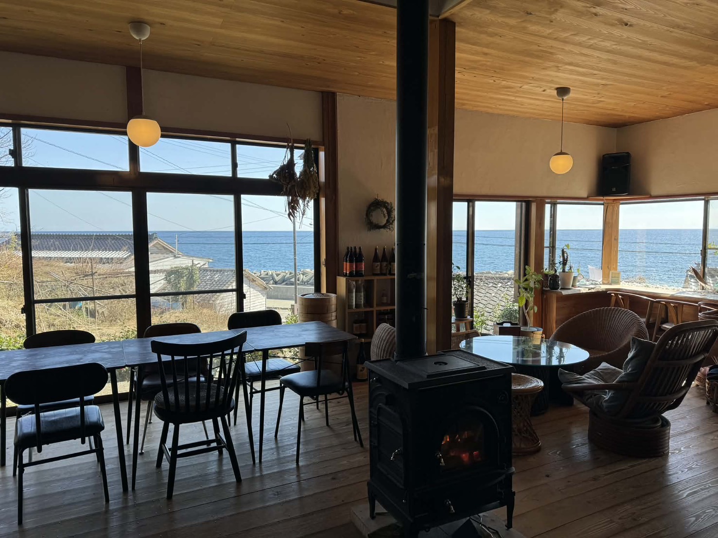 自慢は目の前の海、高千漁港の大謀綱で獲れた海の幸満載の食事。自家製ツユで味わう名物イカソーメンなど近海で獲れた魚介は、併設の食堂でも堪能できます。徒歩5分ほどで入崎(にゅうざき)海水浴場があり、キャンプやバーベキューを楽しめる環境。「佐渡天然杉コース入口」「石花トレッキングコース」も近く、山と海が隣り合う自然を満喫できます。