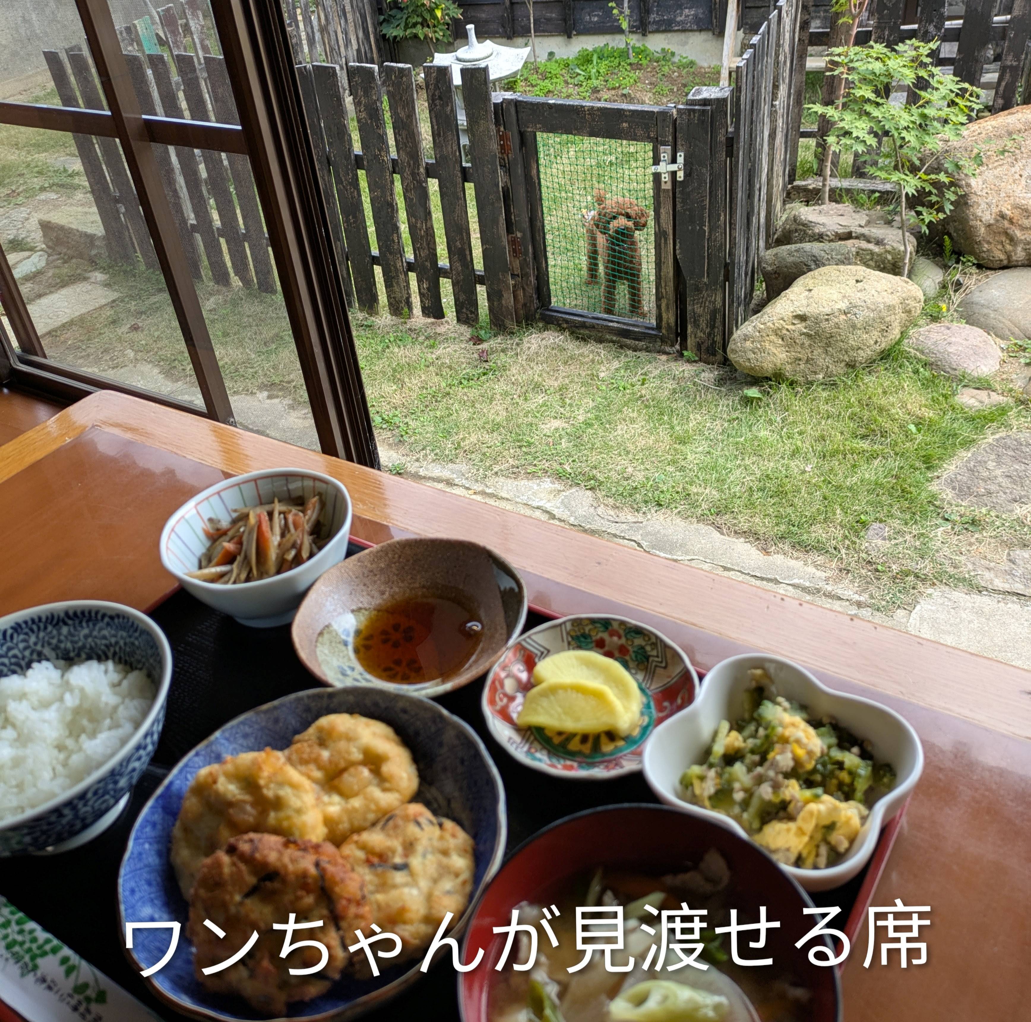 中庭に犬を放し食事しながら見られる席もあります。