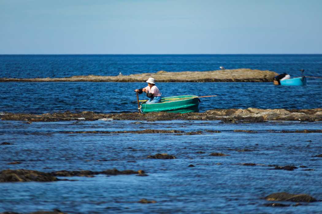 小木の城山台から沢崎の神子岩まで連なる、約16kmの海岸線。古い火山活動により形成された変化に富む景観は「佐渡小木海岸」として国の天然記念物及び名勝。矢島経島、南仙峡、枕状溶岩台地の沢崎など多くの景勝スポットを擁します。また、岩礁地帯において小回りのきく「たらい舟」による磯ネギ漁でも知られています。