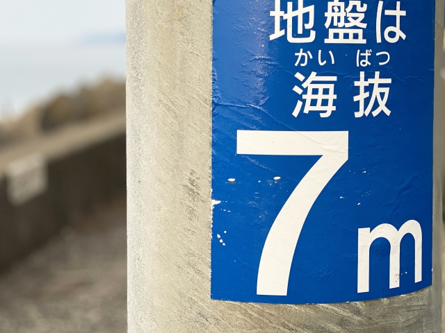 避難場所は、地震・津波・土砂災害・洪水によって異なります。津波の際は、10m以上の高台に避難しましょう。